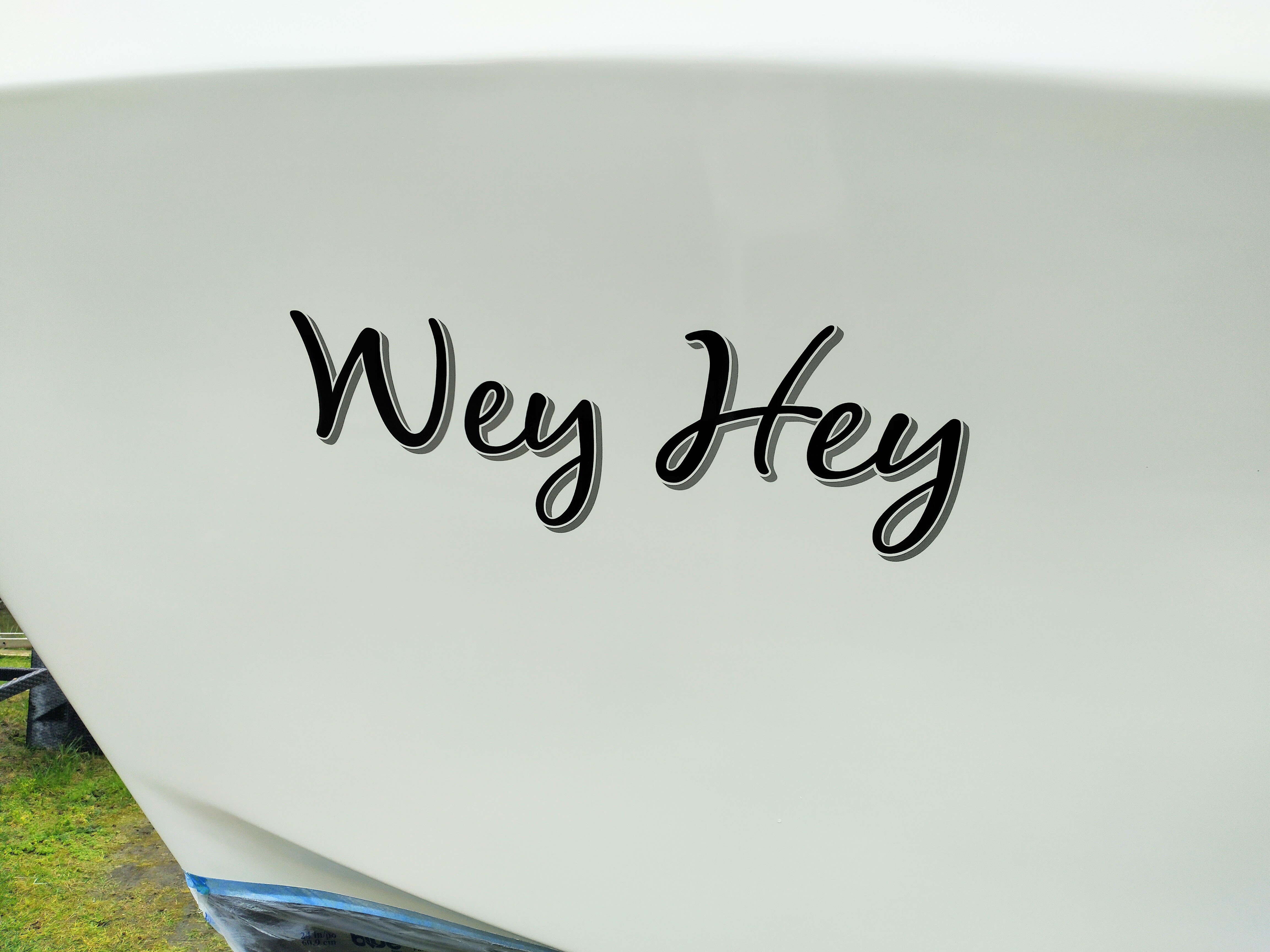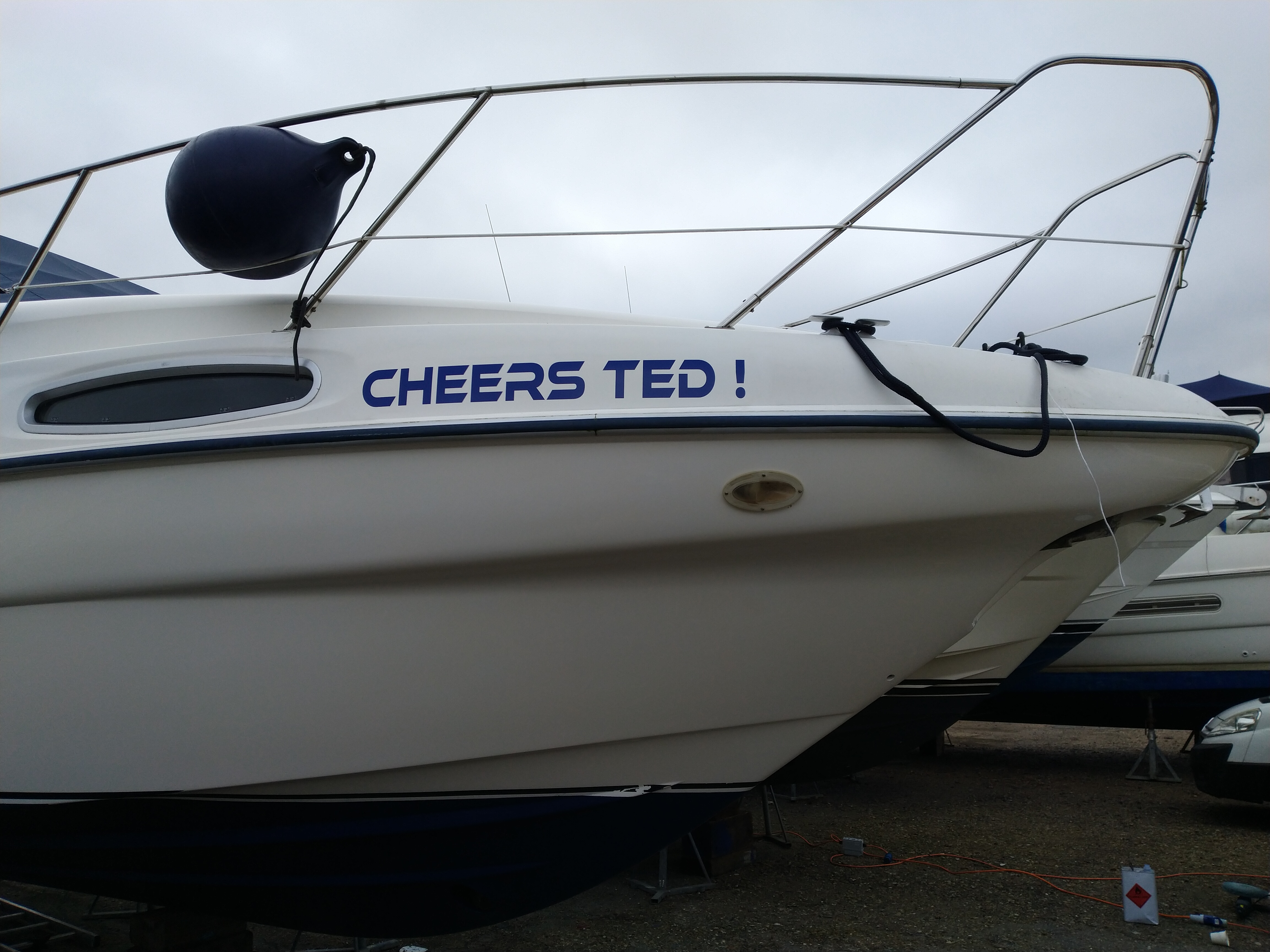 - Contact us with your requirements, Boat Name, Single or Dual Colour(s), Font, Size and Quantity. For standard colours see the ‘About’ page.